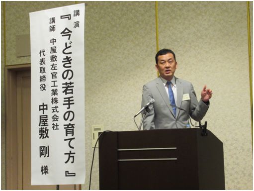 | 勉強会には共栄会会員、村本建設役職員など約100人が参加した。冒頭森本会長は「今年の勉強会は業界全体の課題である若手の人材確保、人材育成に焦点を当てた。中屋敷社長は我々と同じ業界で活躍されている方なのでぜひ参考にして役立ててもらいたい。」と挨拶した。村本建設からの来賓南條秀和執行役員土木統括部長は「若手の離職を防ぐためには『希望・給料・休日』の『新3 K』を掲げる必要がある。雇用環境の改善の為に勉強会で何かをつかみ取ってほしい」と語った。 | ![]() |