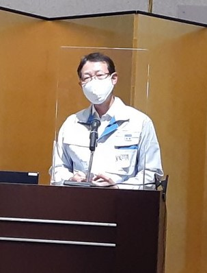 | 村本社長からは、「建設業界のほとんどが土曜日も働いています。そんな現状を打破するために、当社では4週6休で現場を閉所する取組みを始めようとしています。皆さんも同じ土俵で同じことを考え、様々な課題や検討事項をこの場で話合い、各社に持ち帰って、ぜひとも社内で議論してほしいと思います。建設業界には、素晴らしい技術があります。今後の建設業界の人材確保、そして、この業界で長く働いてもらい、この業界を衰退させない取組みの一つとして、真剣に議論してください」との来賓あいさつがありました。 | ![]() |